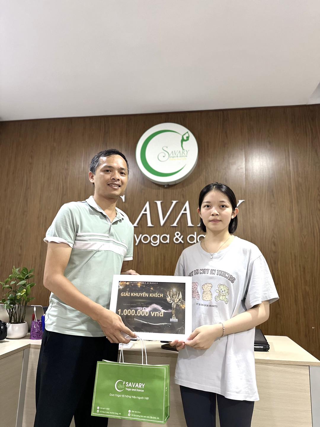 🔥 2 Giải Khuyến Khích: Trị giá 1.000.000đ bao gồm: 1 tháng tập miễn phí tại Savary Yoga & Dance + 1 bình đựng nước thời trang.