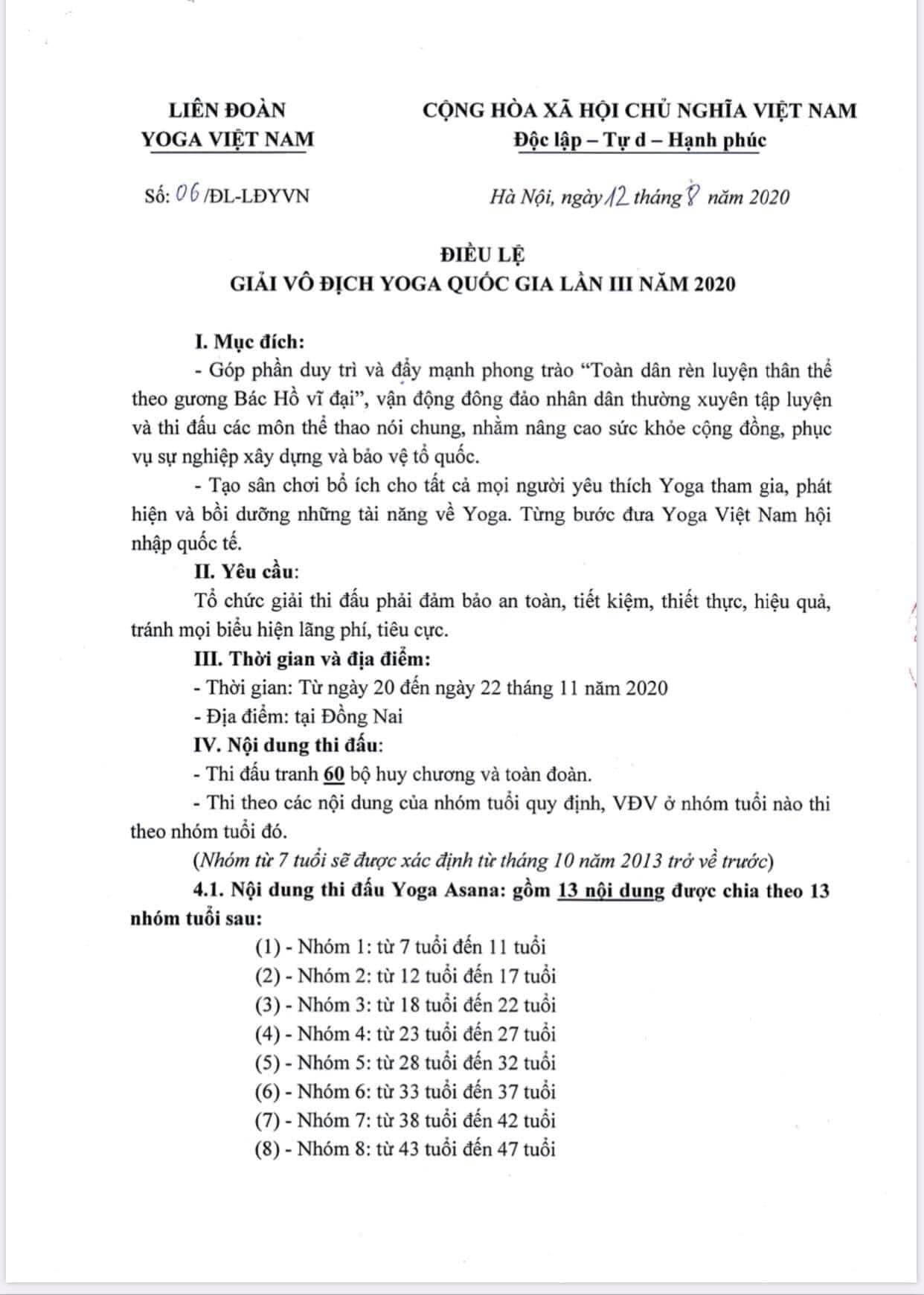 🌈 NỘI DUNG: Phổ biến về điều lệ giải vô địch yoga toàn quốc lần 3 năm 2020 tại Đồng Nai do LIÊN ĐOÀN YOGA VIỆT NAM TỔ CHỨC .