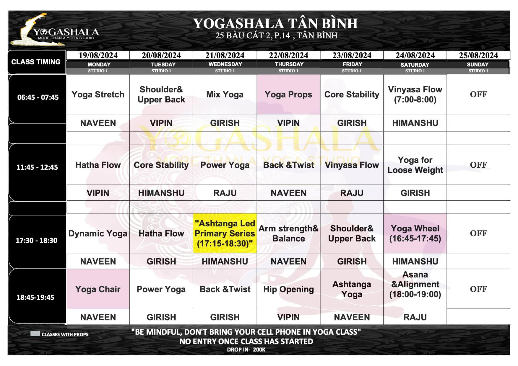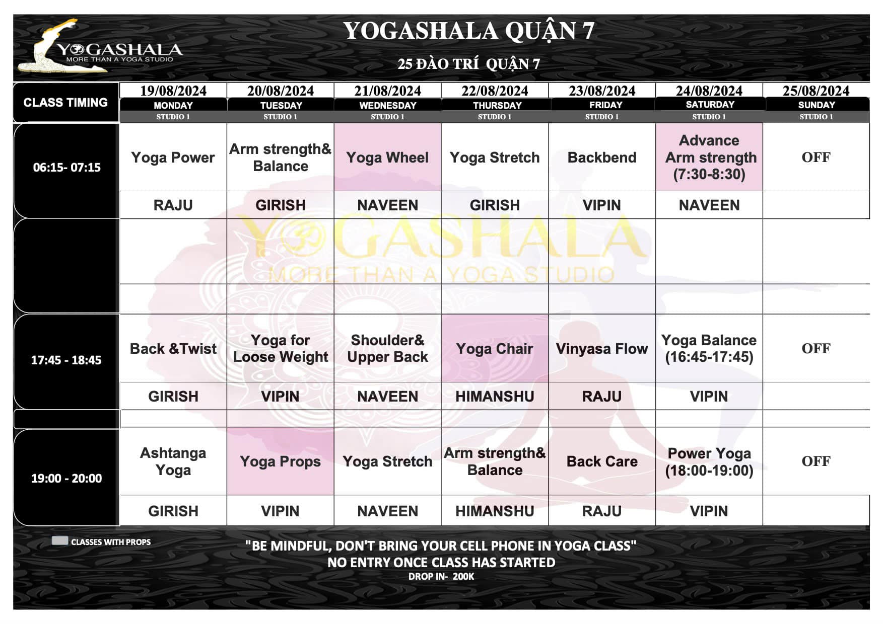 #LỊCH #TẬP #TỪ #19.08.2024 #25.08.2024Yogashala #xin #gửi #Quý #hội #viên #lịch #học #tại #trung #tâm #vào #tuần #sau #Quý #hội #viên #vui #lòng #theo #dõi #lịch #học #được #cập