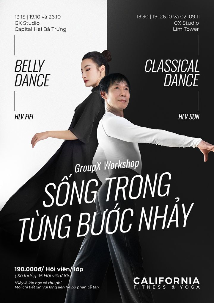 🌟 GroupX Workshop tháng 10 tại Cali dành cho những ai muốn tìm lại sự kết nối giữa cơ thể và tinh thần, để mỗi bước nhảy không chỉ là vận động, mà còn là cách lắng nghe chính mình.