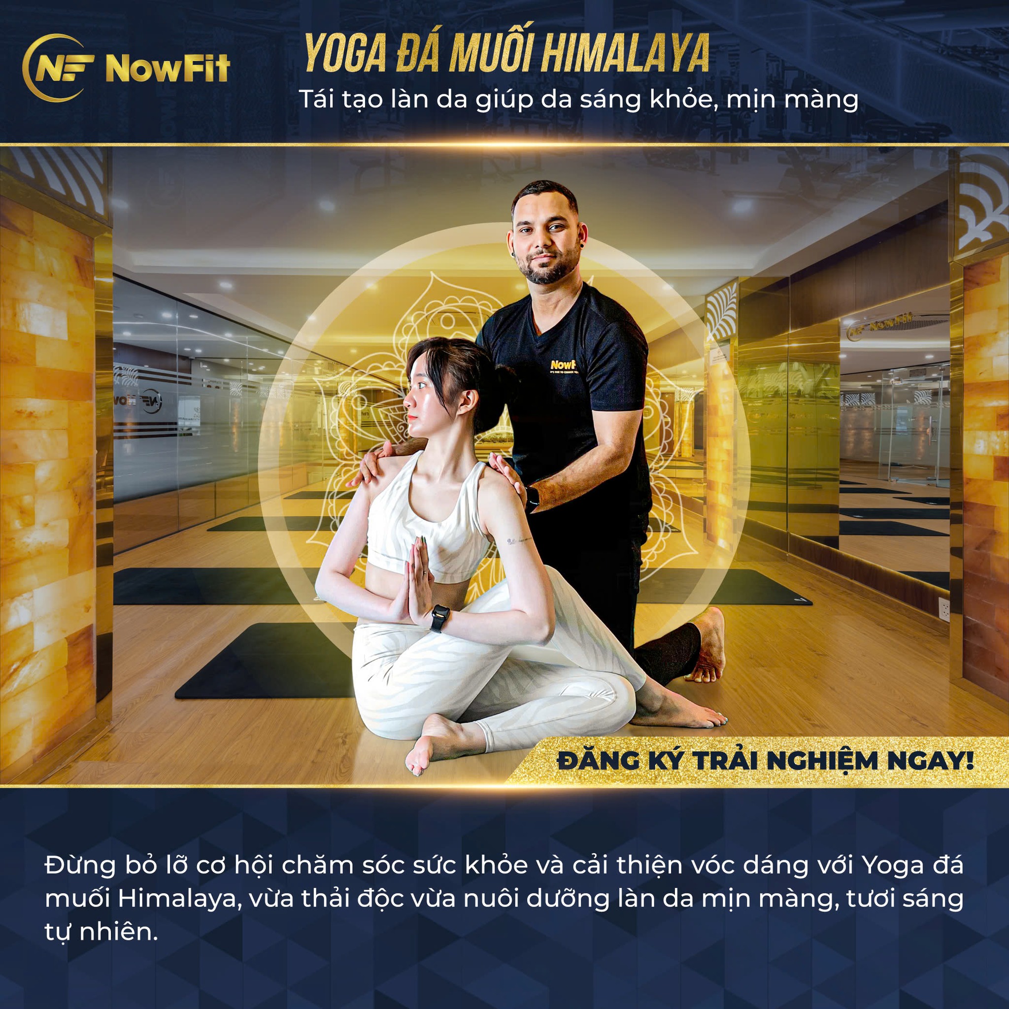 Bên cạnh đó, NowFit mong muốn mang đến cho Quý Hội viên trải nghiệm thư giãn độc quyền với Giãn cơ đá muối Himalaya giúp giải tỏa căng thẳng – xoa dịu cơ – linh hoạt khớp và phương pháp tái tạo làn da từ sâu bên trong, cho làn da sáng khỏe, mịn màng với Yoga đá muối Himalaya