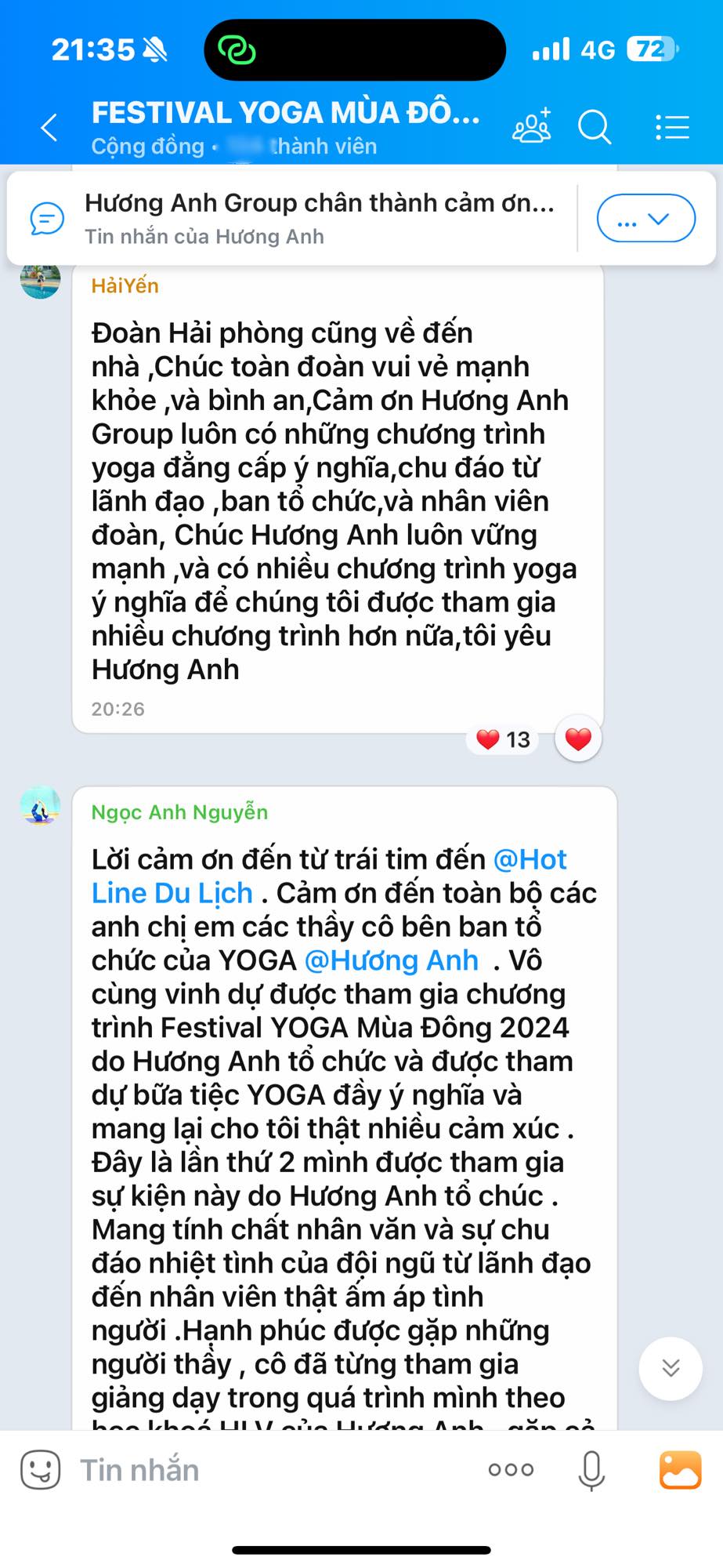 PS: Cảm ơn đội ngũ Team truyền thông Hương Anh, Hương Anh Tourist, các chuyên viên Yoga của Hương Anh đã luôn nhiệt huyết hỗ trợ để chương trình được diễn ra suôn sẻ.