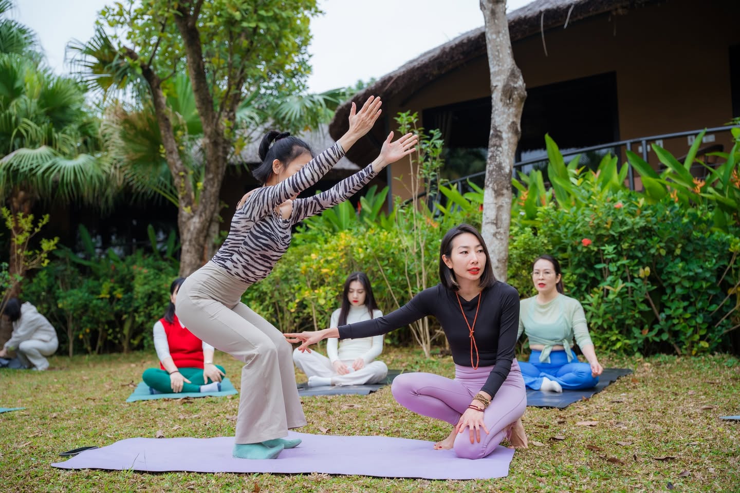🌟 Ngày thứ hai của sự kiện Yoga Retreat khởi đầu với một lớp học đáng nhớ: Yoga Advanced cùng hai Giảng viên xuất sắc – Master Hương Mun và Master Luna Thái – Người sáng lập và là linh hồn của Yoga Luna Thái Academy.