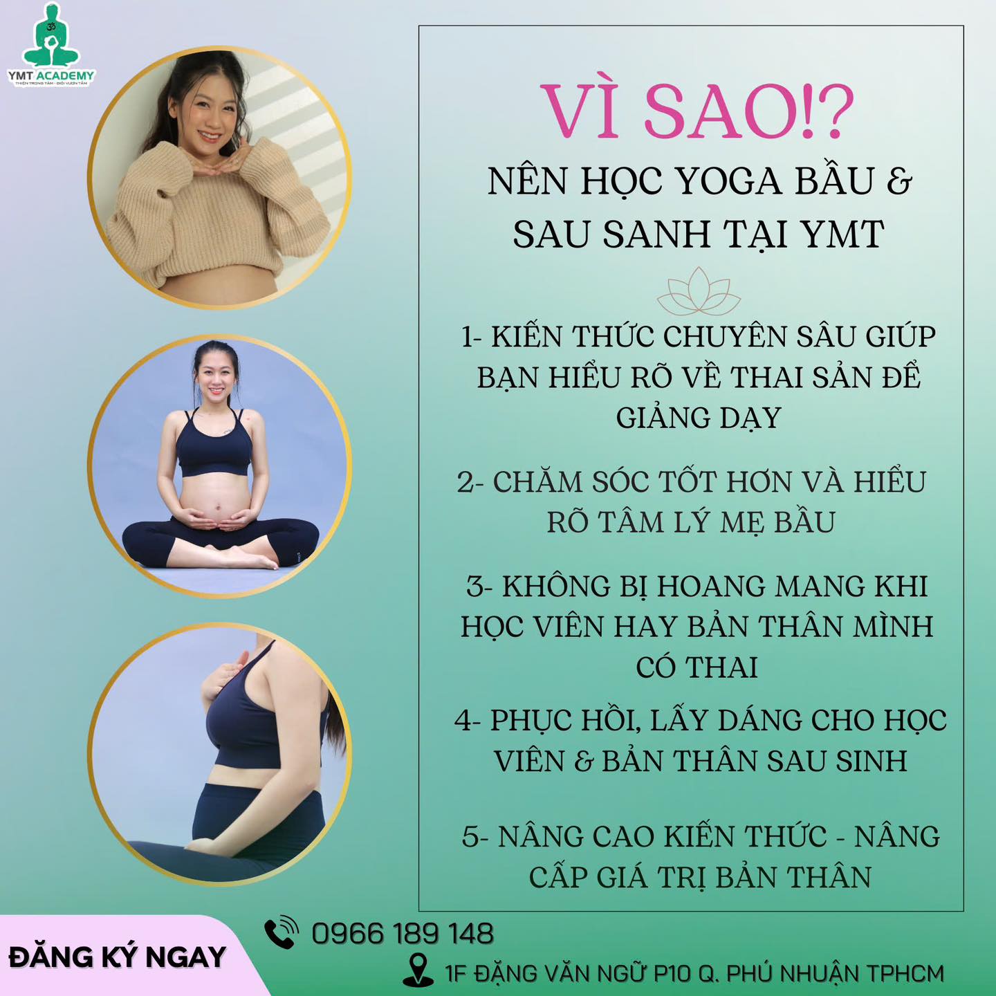 👉🏻Với nhiều nội dung rất cần thiết và bổ ích mà Học Viện muốn truyền tải cho các HLV Yoga, nhằm mục đích chăm sóc sức khoẻ cho bản thân, người thân và các học viên thương yêu của mình khi mang thai.