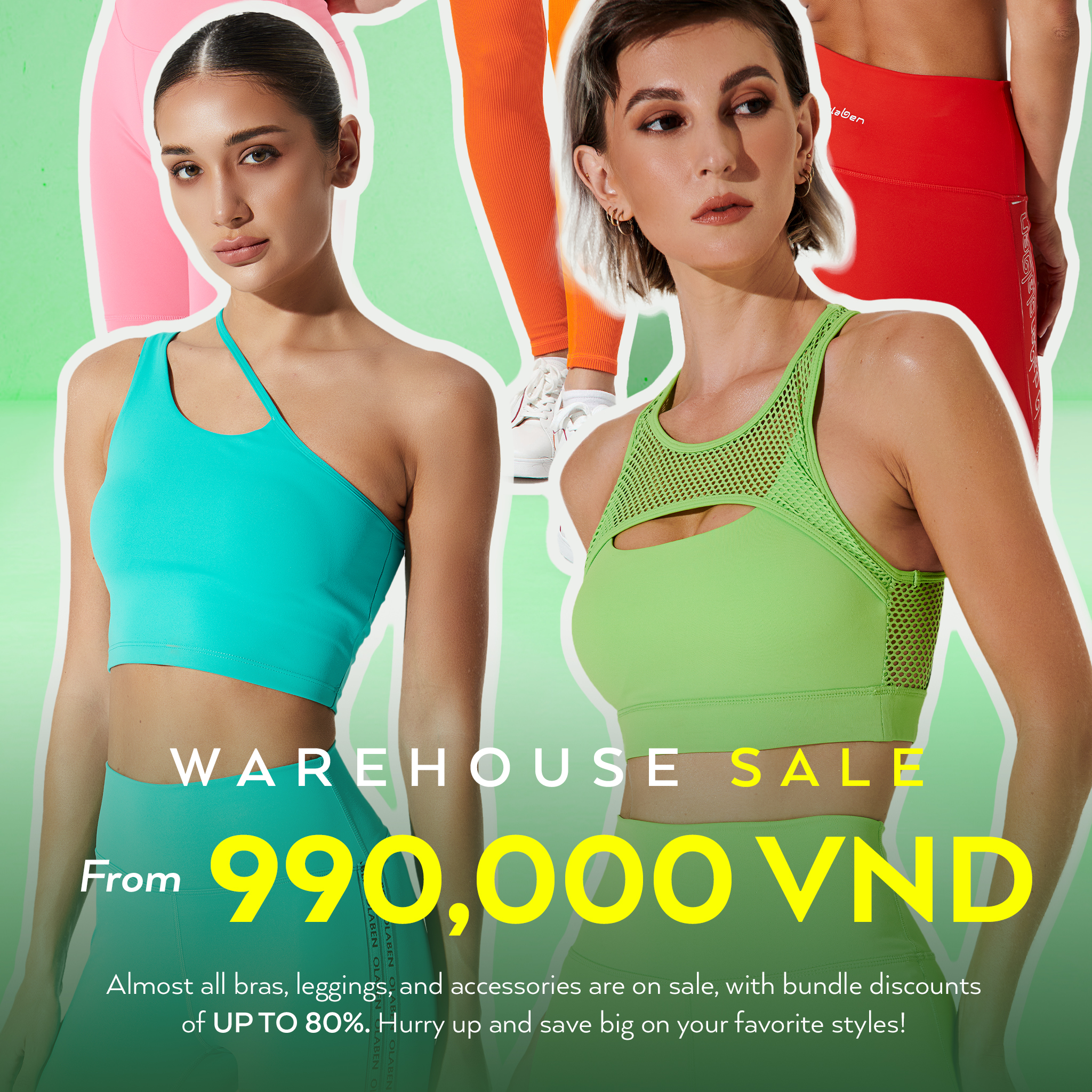 ĐỘC QUYỀN chỉ từ 990K cho bundle 03 món bao gồm bra, leggings và cả phụ kiện. Lần đầu tiên ghim Deal Cực Đậm đến 80% cho Bộ Sưu Tập Signature Venetian Red và Full Bảng Màu hot-pick tại Olaben như Cotton Candy, Java, Tangerine và Floures Green.