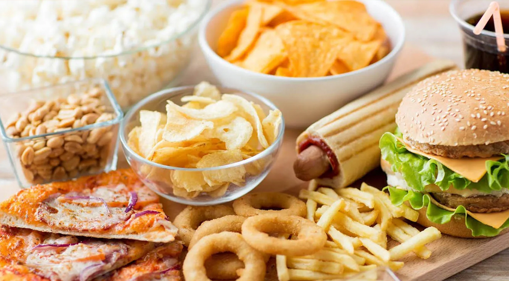 Đồ ăn nhanh: gà rán, pizza, khoai tây chiên,….