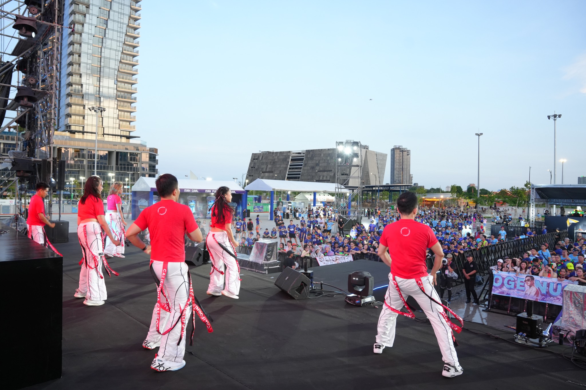 Một trong những điểm nhấn ấn tượng tại Revive Water Run 2024 chính là màn khởi động tràn đầy năng lượng đến từ các Huấn luyện viên GroupX của California Fitness.