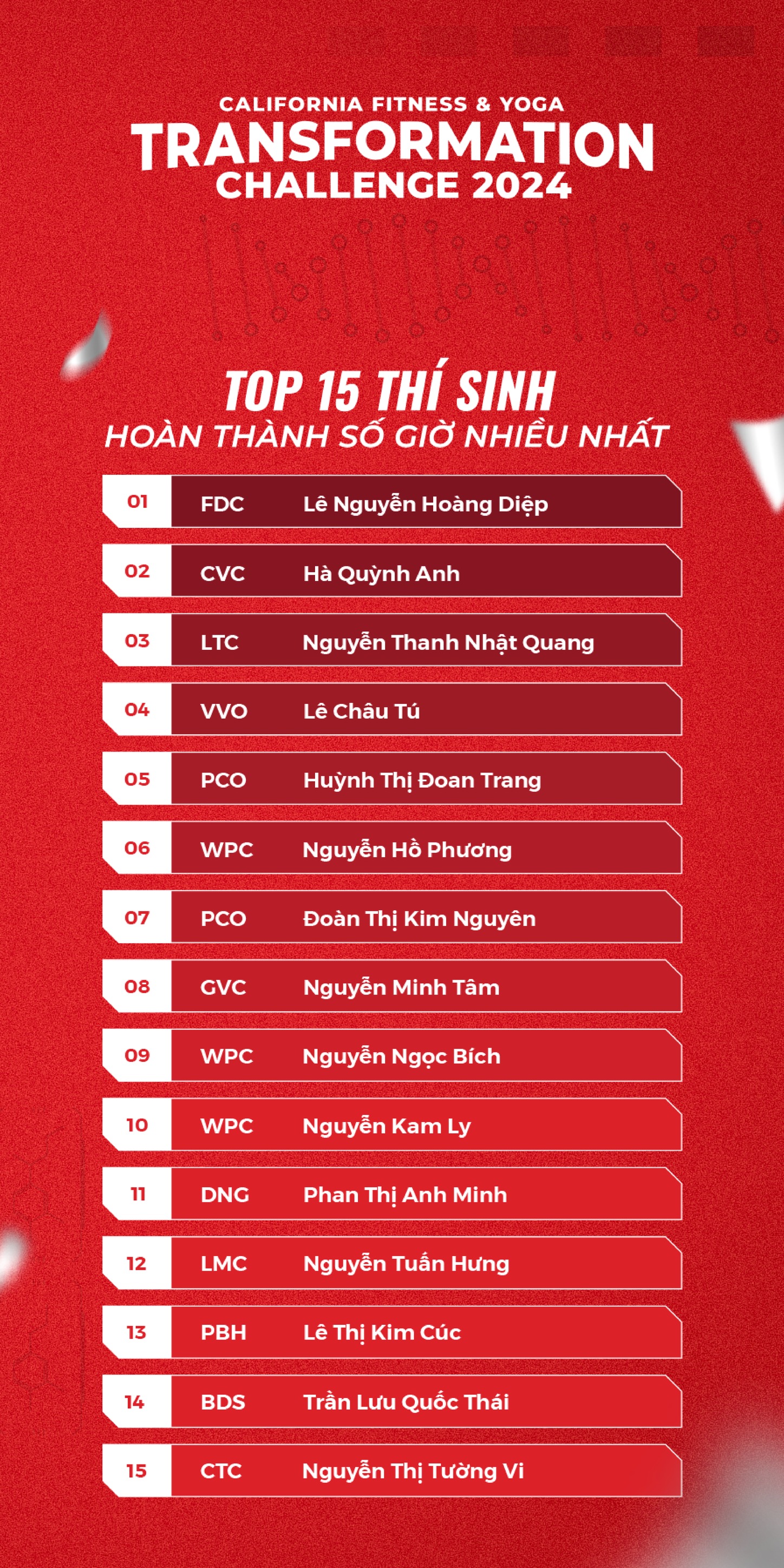 [🆕🇻🇳] California Fitness & Yoga Centers Vietnam 🏋️ Top1Gym 💪 TOP 15 thí sinh hoàn thành nhanh nhất và có số giờ tập luyện nhiều nhất trong chặng 02 của 𝐂𝐚𝐥𝐢𝐟𝐨𝐫𝐧𝐢𝐚 𝐓𝐫𝐚𝐧𝐬𝐟𝐨𝐫𝐦𝐚𝐭𝐢𝐨𝐧 𝐂𝐡𝐚𝐥𝐥𝐞𝐧𝐠𝐞 𝟐𝟎𝟐𝟒 đã lộ diện! Có những “c , shares-5✔️ , likes-26❤️️ , date-2024-05-19 14:02:35🇻🇳🇻🇳🇻🇳📰🆕
