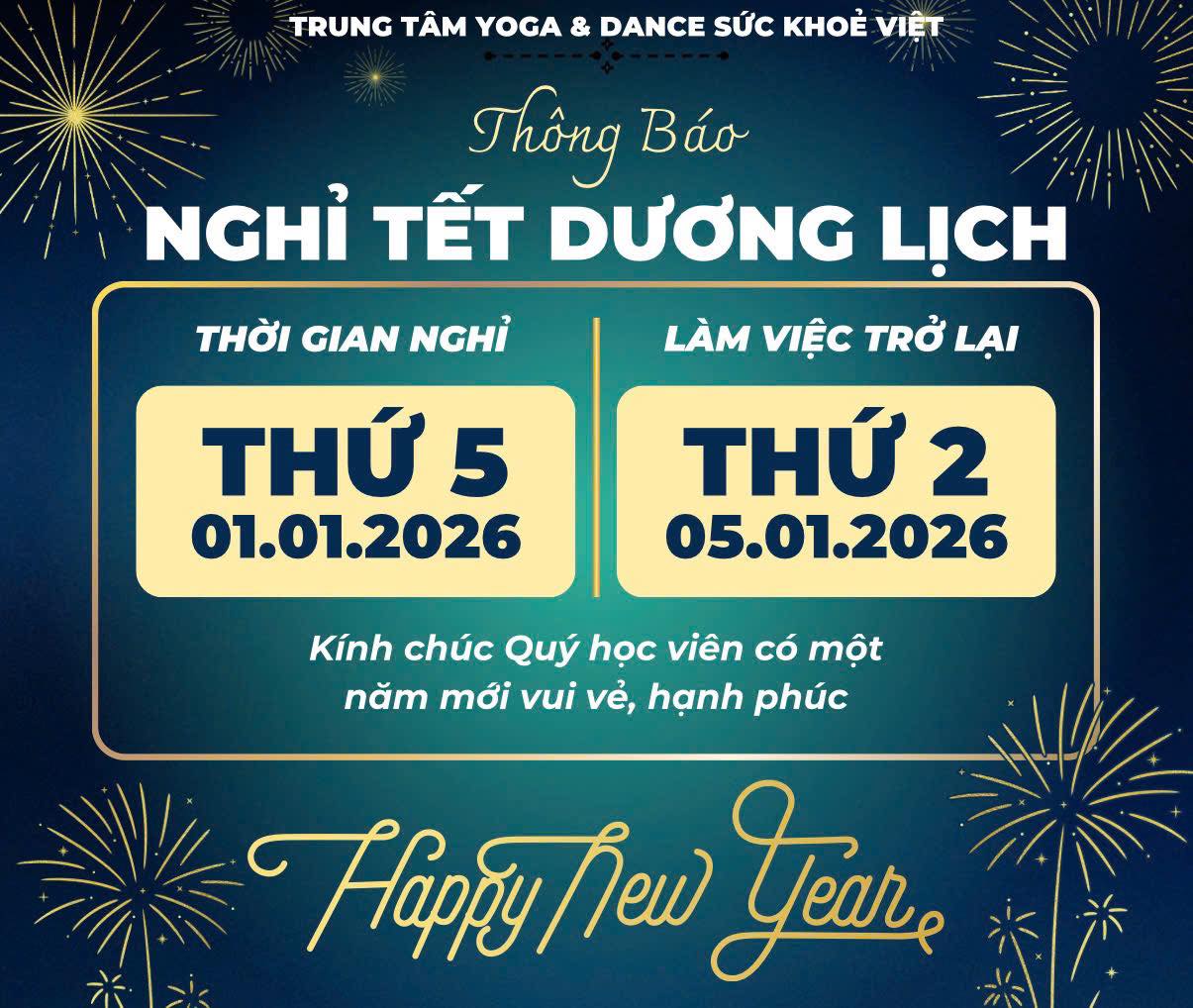 #THÔNG #BÁO #LỊCH #NGHỈ #TẾT #DƯƠNG #LỊCH #Trung #tâm #yoga #dance #Sức #Khoẻ #Việt #kính #chúc #Quý #học #viên #và #gia #đình #một #năm #mới #thật #nhiều #sức #khỏe #nă