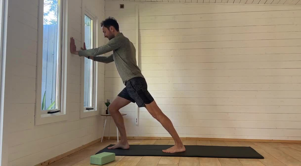 Bài tập hai sẽ được thực hiện như sau: Nghiêng người phía trước, 2 tay nắm thanh ngang hoặc chống tường. Một chân đặt trước và chân còn lại đặt phía sau. Tiếp đến ngồi xổm xuống, giữ lưng thẳng và để gót chân chạm đất càng lâu càng tốt. Sau đó, giữ tư thế trong 10 giây rồi đứng người, thả lỏng. Động tác này cũng sẽ thực hiện 20 lần.